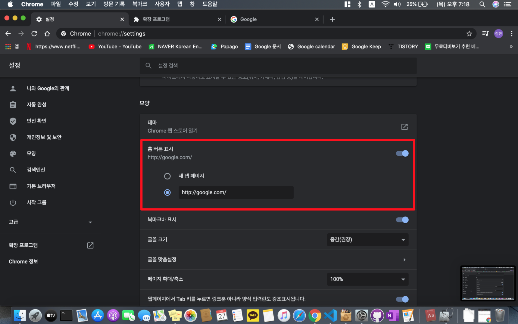 설정으로 가셔서 제가 설정한 것과 똑같이 설정해 주시기 바랍니다.