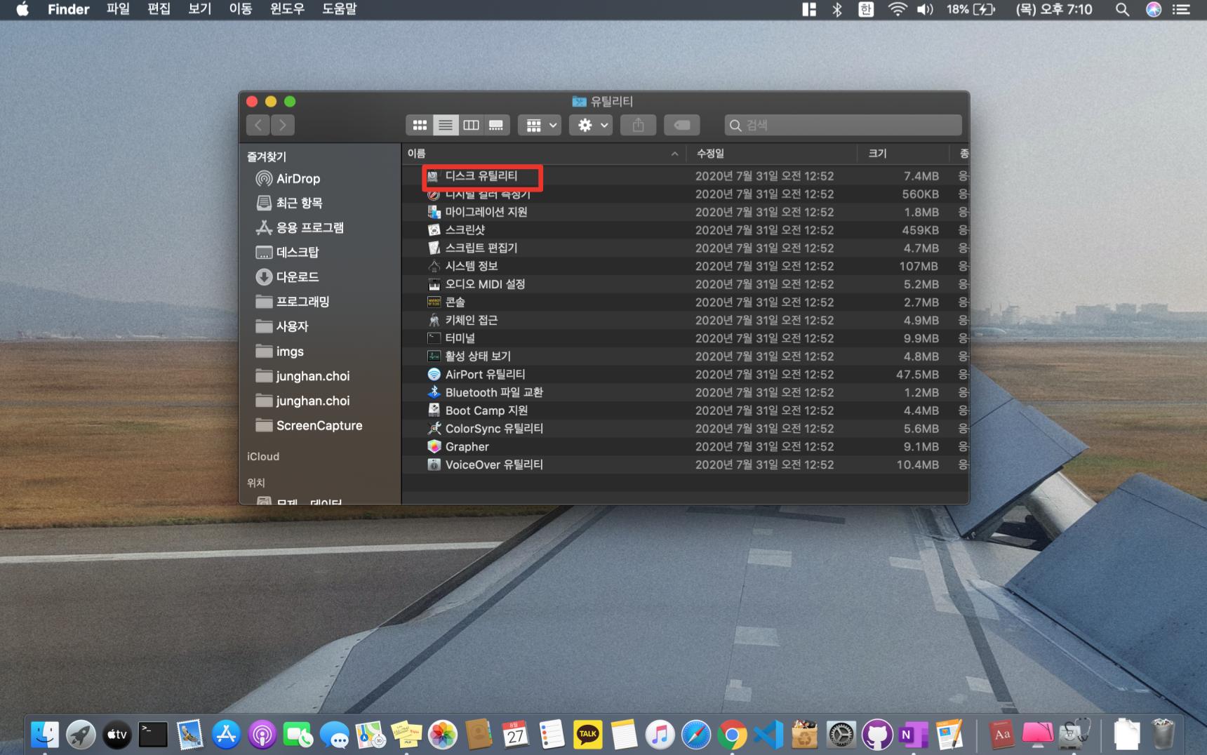 왼쪽 아래 Finder -> 응용 프로그램