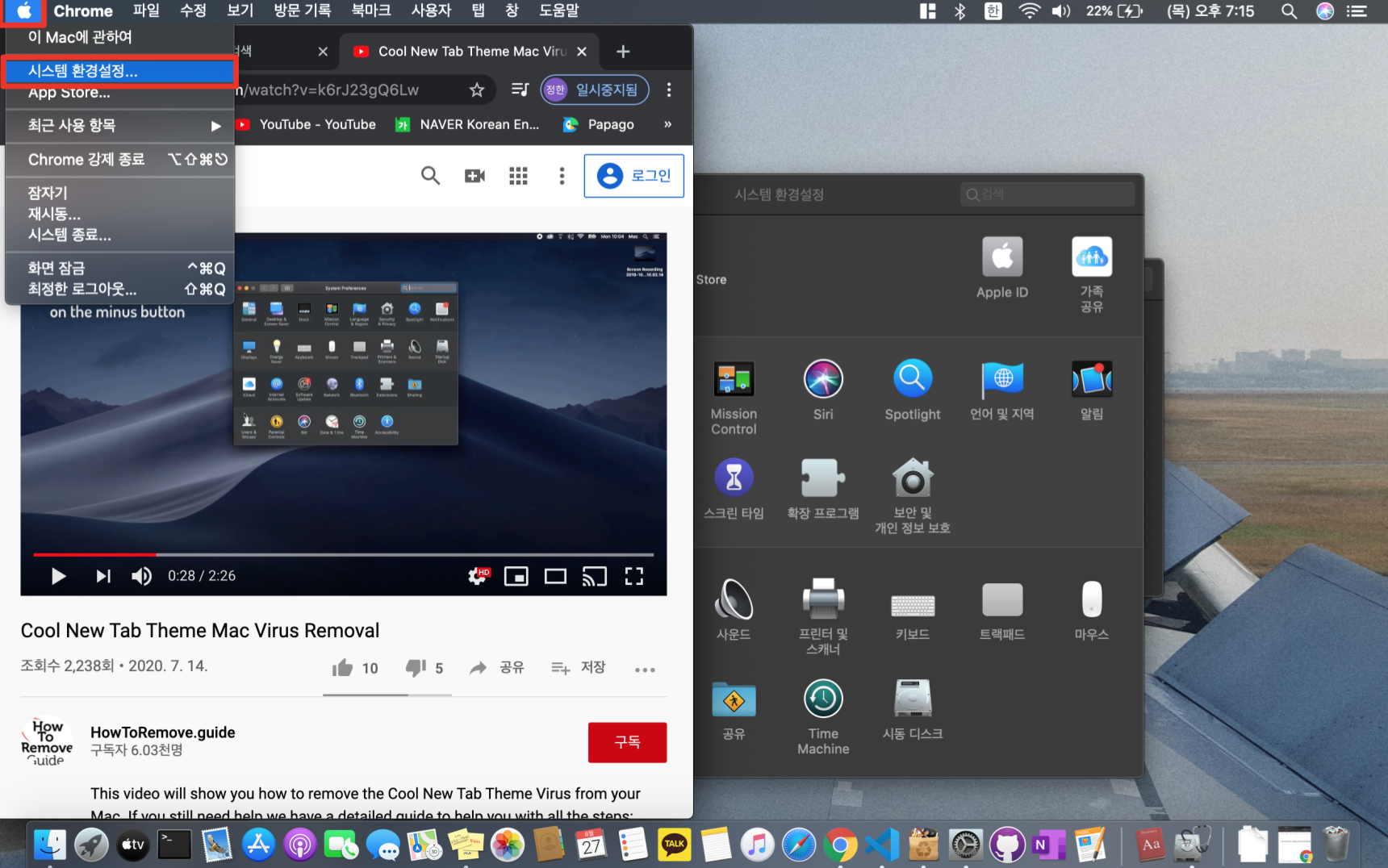확장 프로그램으로 가서 평소에 보지 못했던 또는 익숙하지 않은 확장 프로그램들을 모두 삭제해 주시기 바랍니다. 헷갈리신다면 모두 삭제해 주시고 나중에 다시 다운로드하는 것을 추천드립니다.