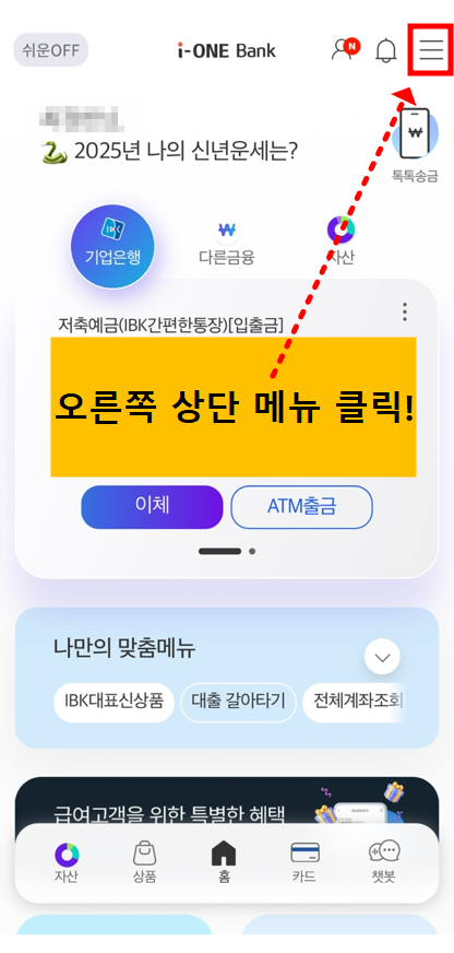 - 'IBK기업은행' 어플을 실행한다