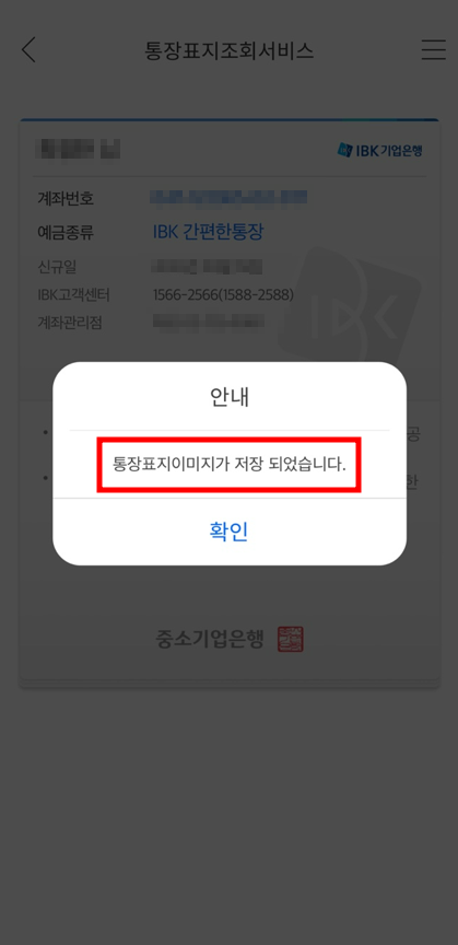 - 이미지 저장 완료 후 사진 앨범으로 가서 IBK기업은행 통장사본을 확인한다.