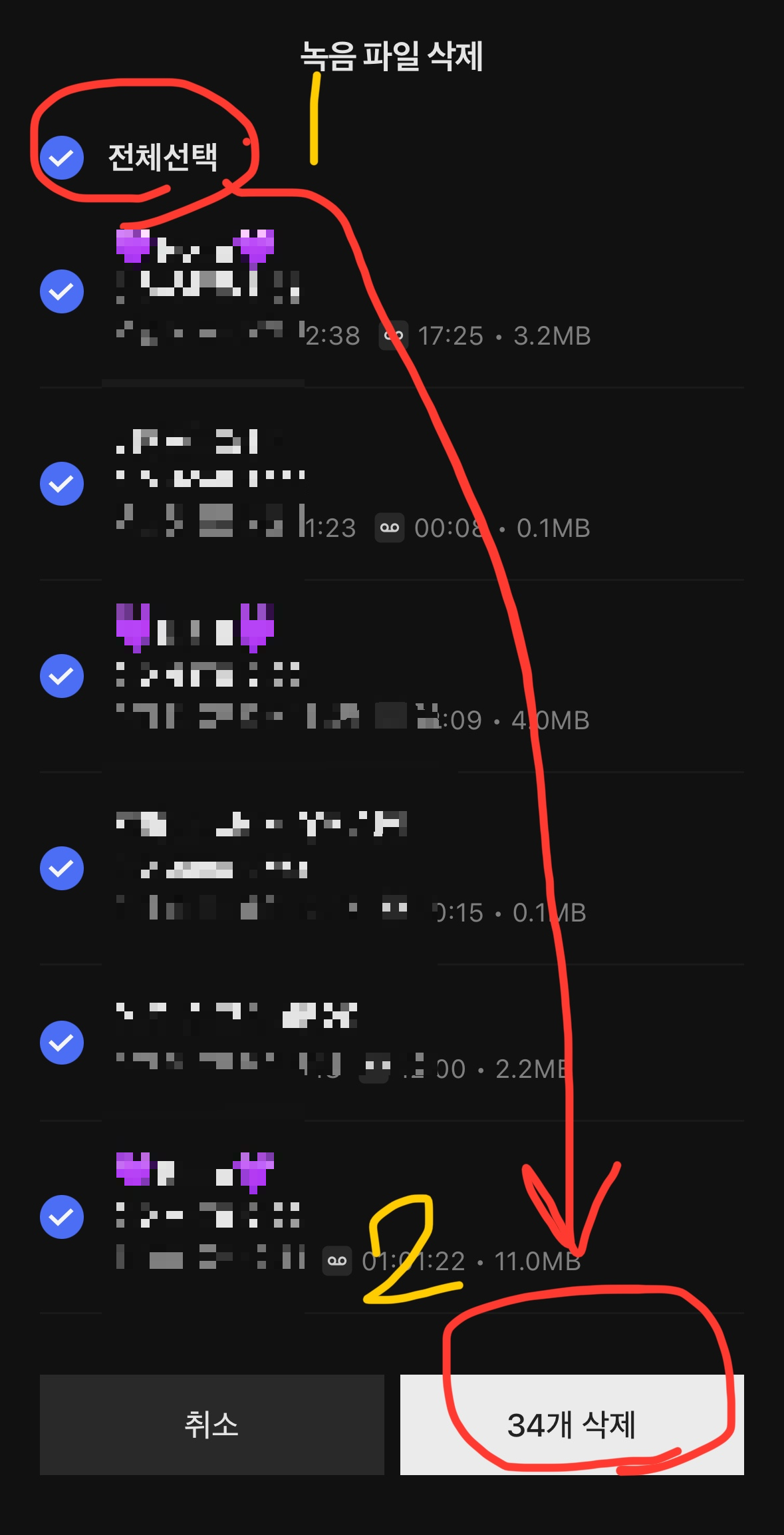 위 사진 메뉴에 '오래된 녹음 파일 자동 삭제' 기능도 있으니 클릭하여 혼자 확인하셔도 충분히 설정하실 수 있을겁니다.
