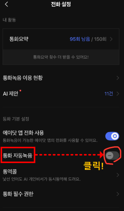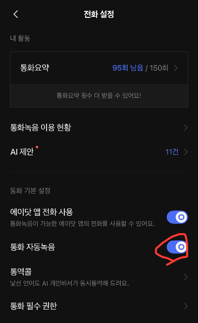 1. 에이닷 전화 통화 자동 녹음 설정 방법