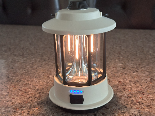 - 디자인 빈티지 감성의 랜턴 디자인에, 화이트 LED와 전구색(텅스텐) 조명이 조화롭게 어우러져 캠핑장, 피크닉, 실내 어디서든 분위기를 살려줍니다.