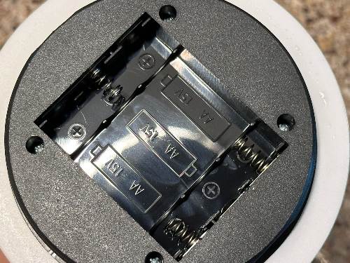 비센드 조명 아래 부분에는 건전지를 넣는 방식이 있습니다. AA 건전지 3개가 필요합니다.