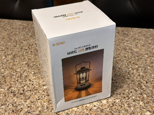 비센드(B-SEND) 샤인 캠핑랜턴 박스(왼쪽)와 실물(오른쪽 사진)입니다. 저는 쿠팡에서 구매했습니다.