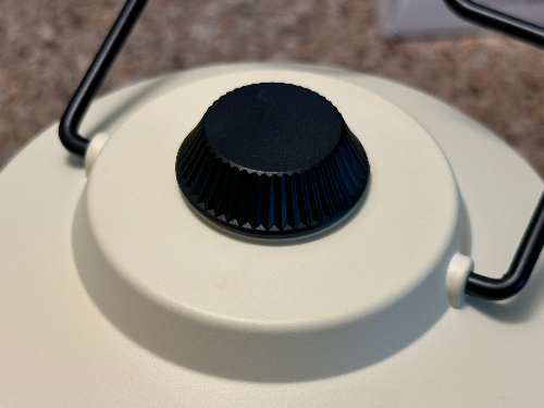 위 사진은 검정색 동그라미 부분은 스위치 입니다. 왼쪽으로 돌리면 조명이 켜지고 계속 돌리면 단계별로 다른 밝기와 색상으로 전환되는 것을 알 수 있습니다. (아래 사진을 참고하시기 바랍니다.)