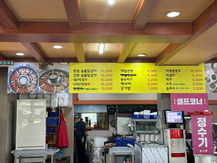 메뉴는 위 사진처럼 양념, 간장 숯불닭갈비 그리고 물막국수, 비빔막국수가 있고 이외 메밀 전병, 퐁듀치즈 등이 었습니다.