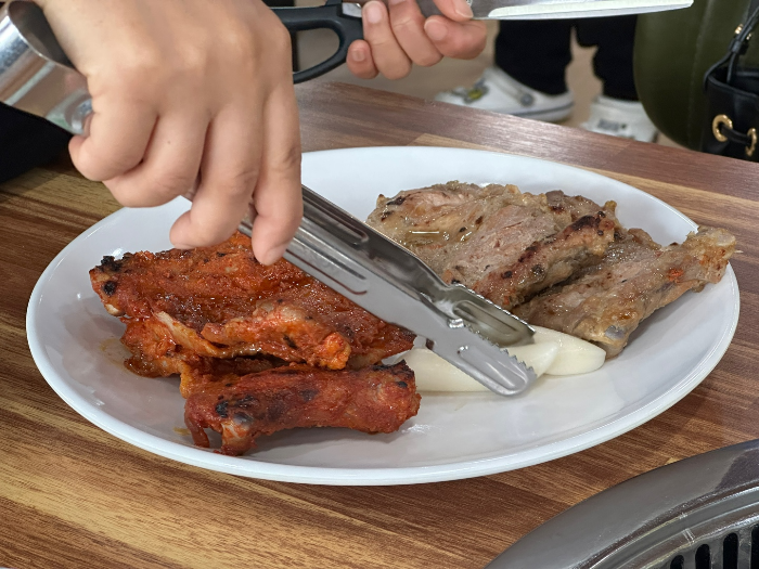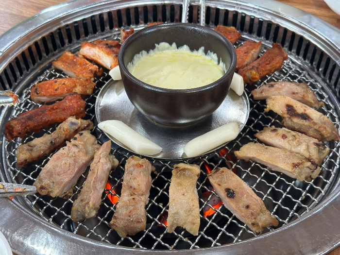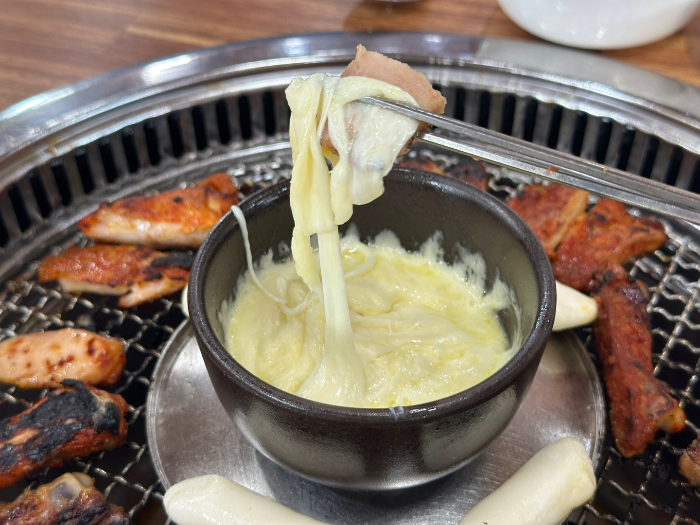 저는 숯불닭갈비 양념 1인분, 간장 1인분, 비빔막국수, 퐁듀치즈를 주문 했습니다. 닭갈비는 맛이 질기지 않아 맛있었고 비빔막국수는 조금 짜서 육수를 따로 주셔서 부어서 먹었지만 그래도 조금 짰습니다. 제일 맛있었던 것은 퐁듀치즈와 함께먹는 닭갈비였습니다.