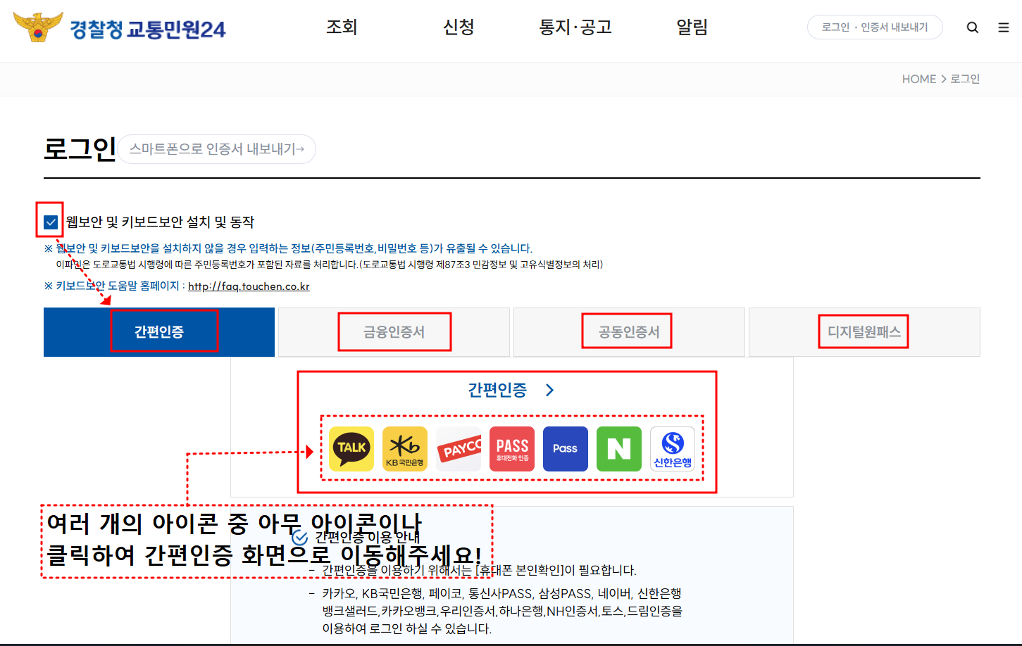 - 간편인증에서 아이콘 아무거나 클릭! (카카오톡, 국민은행, 네이버 등등)