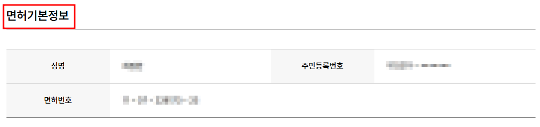 우선 면허기본정보에서 왼쪽 아래 "면허 번호"를 확인할 수 있습니다. 면허번호는 운전면허증에서 "00-00-000000-00" 이렇게 표시되어 있습니다.