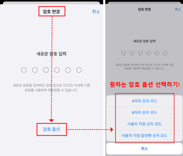 아이폰 잠금 비밀번호 암호 4자리, 6자리, 알파벳 숫자 코드 설정 방법