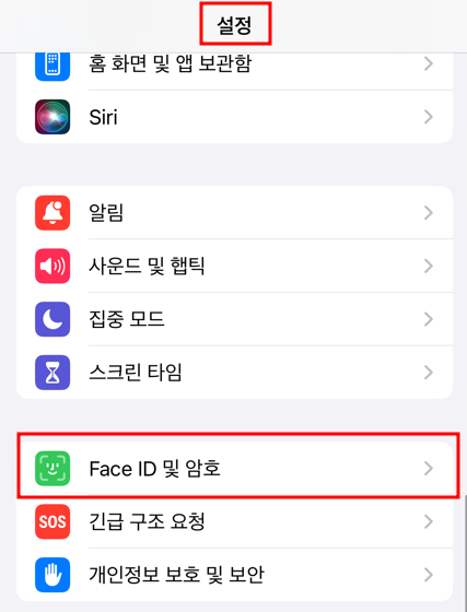 암호를 입력하면 'Face ID 및 암호'로 이동하게 됩니다.