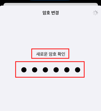 '새로운 암호 확인' 아래 6자리 숫자를 입력하면 6자리 암호로 변경됩니다.