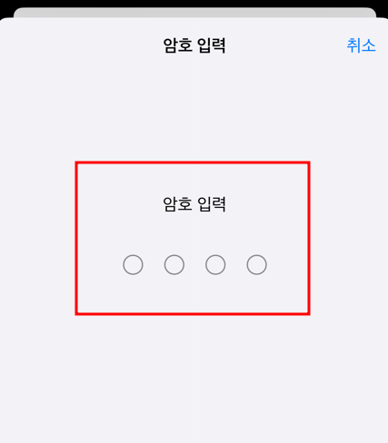 암호를 입력합니다. (저는 기존에 4자리 암호로 설정되어있었습니다)