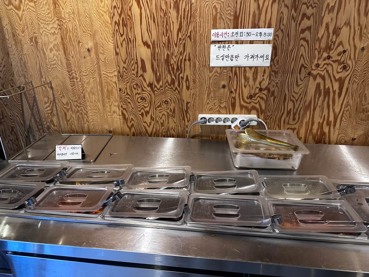잡채도 리필이 되는 줄 알고 셀프코너로 갔지만 잡채만 뺴고 다 있었습니다. 아마 잡채를 한 번 더 달라고 요청했으면 주셨을 것 같네요 다음엔 꼭 리필을 해달라고 부탁해야겠습니다. 셀프코너 이용시간은: 오전 11:30부터 오후 8:00까지로 정해져있습니다.