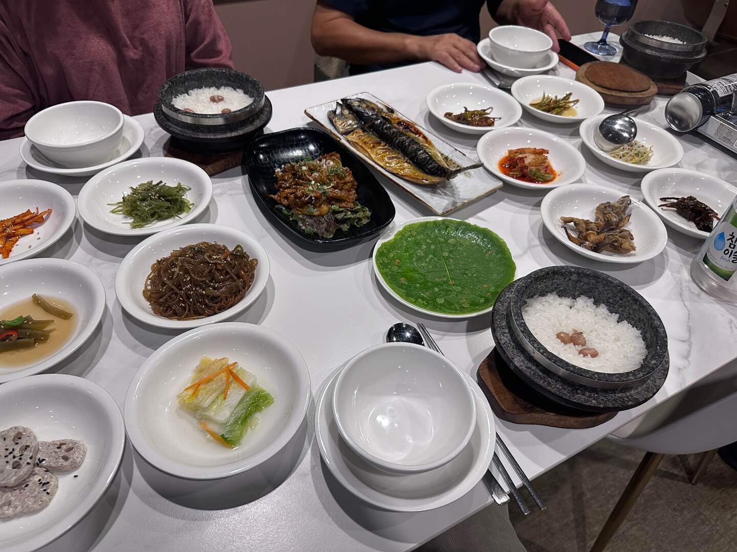 기본 상차림 (성인 1인 / 초등생 이상) 15,000원짜리는 돌솔밥과 청국장을 포함해서 매일 정성담아 차리는 12가지 건강찬이 나오는데 꼭 시키는 것이 좋습니다. 사진에서는 모르겠지만 실제로는 모든 음식들이 윤기가 나고 반짝반짝 깨끗하고 상태가 정말 좋았습니다. 다음 사진에서 보면 얼마나 맛있었는지 싹싹 비워서 모든 반찬을 다 먹었습니다.