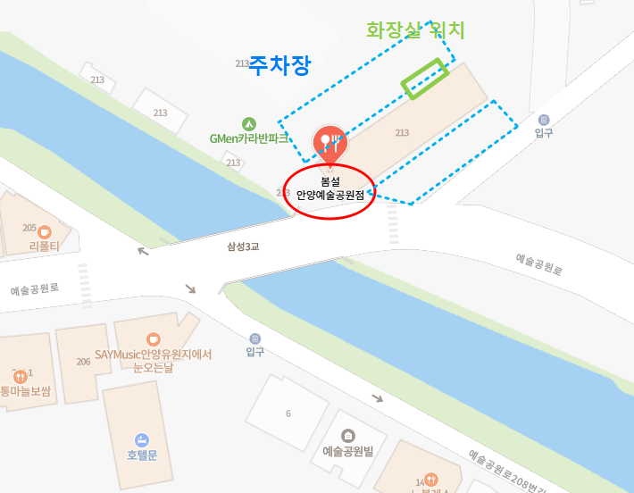 화장실 위치: 왼쪽 주차장으로 가면 건물 입구 왼쪽에 있음