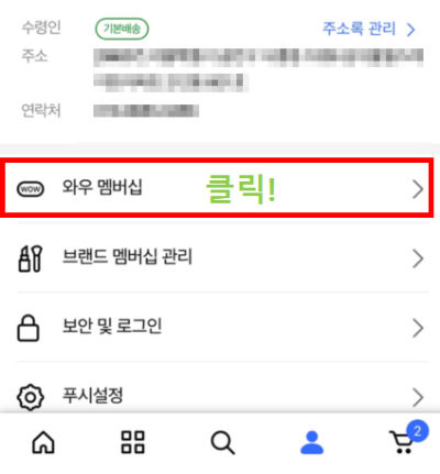 3. 사진에 보이는 '와우 멤버십'을 클릭해주세요!