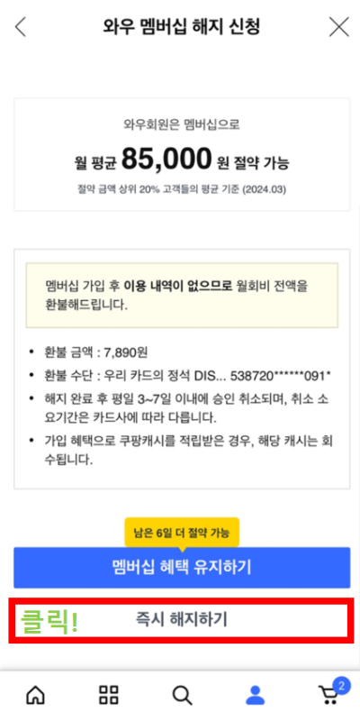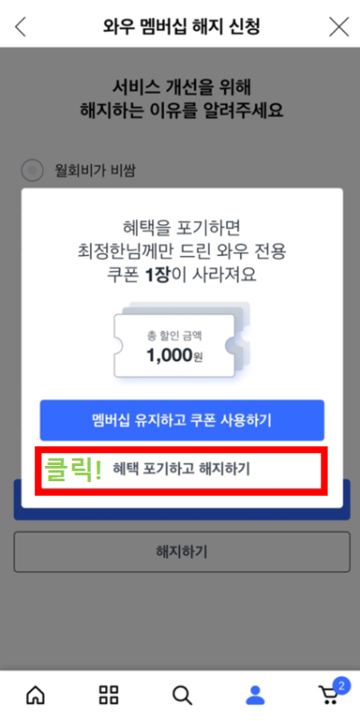 쿠팡 와우 멤버십 자동결제 해지 탈퇴 방법 순서