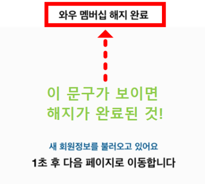 9. 마지막으로 ' 와우 멤버십 해지 완료' 문구를 확인하셨다면 해지(탈퇴)가 완료된 것입니다!
