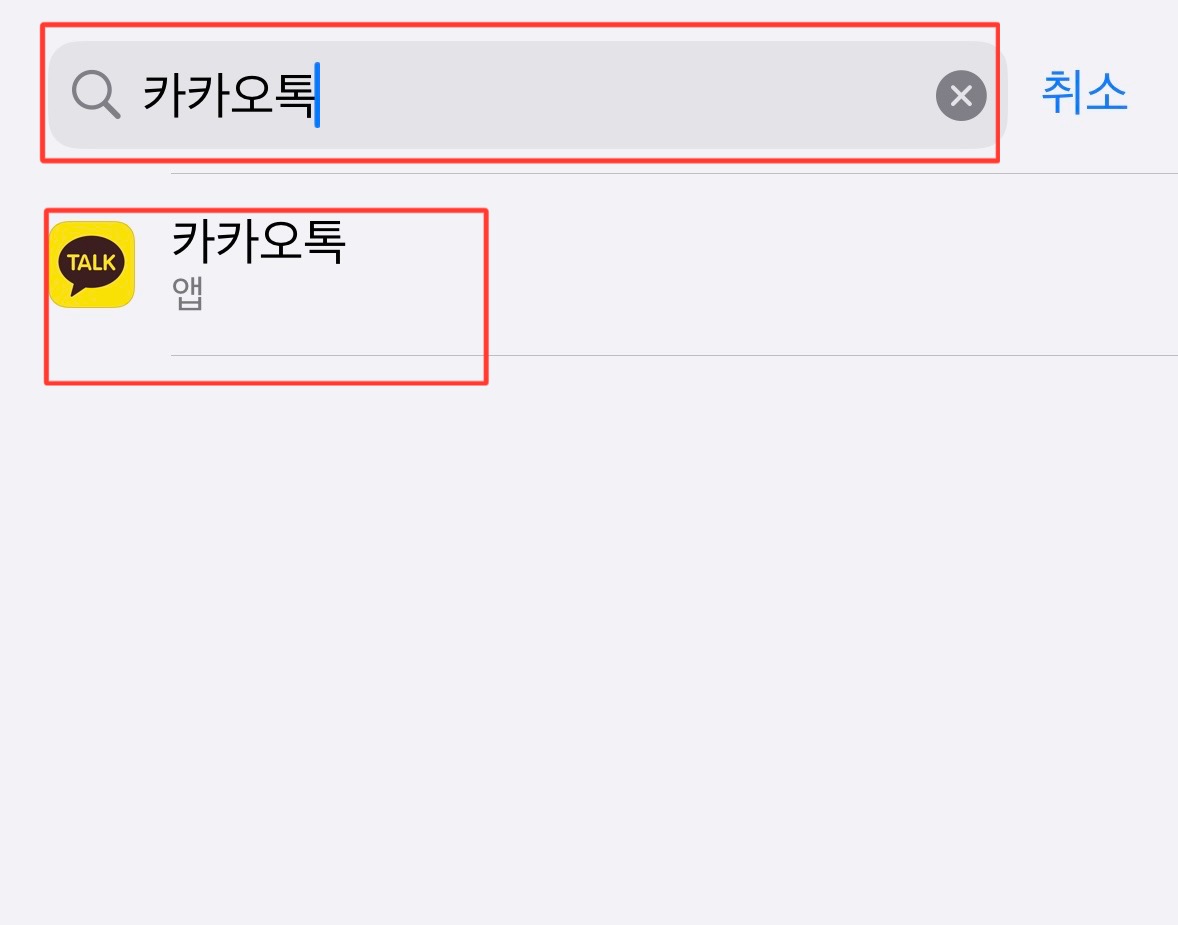 3. '카카오톡'이라고 입력을 한 후 카카오톡 아이콘을 클릭해주세요!