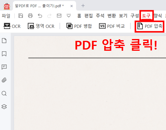 3. 상단 메뉴에서 '도구' -> 'PDF 압축' 클릭