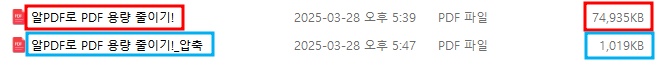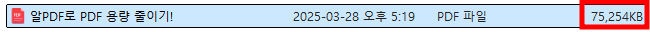 5. 저장된 폴더의 위치로 가서 압축된 파일의 용량 확인하기!