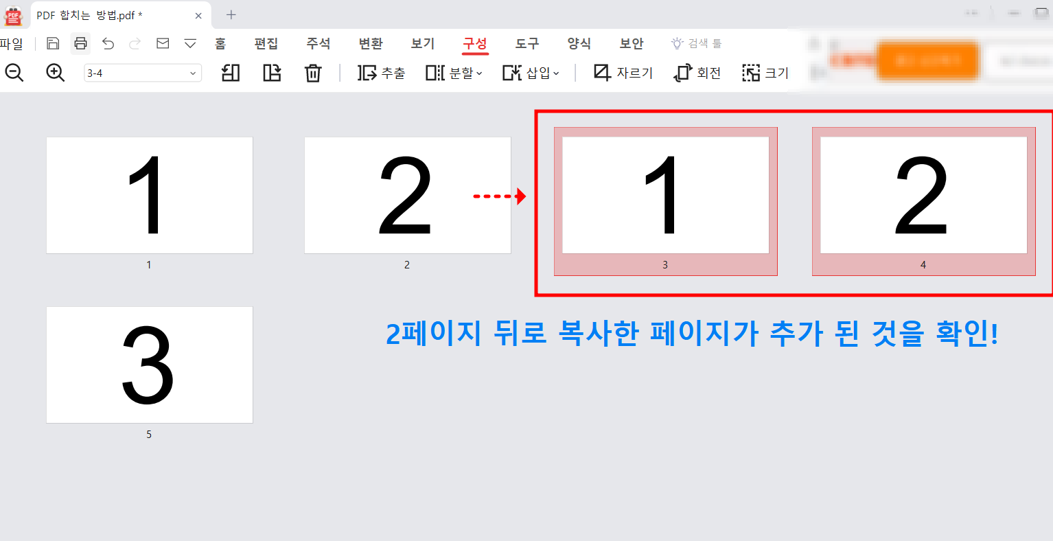 위 사진처럼 복사한 1,2페이지가 2페이 뒤로 들어간 것을 확인할 수 있습니다.